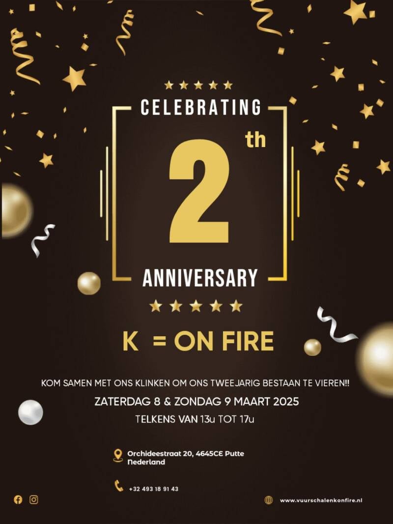 Volg ons zeker en vast via onze Facebookpagina (K = On Fire) of Instagrampagina (vuurschalenkonfire) en blijf op de hoogte van alles wat er te beleven valt bij K = On Fire!