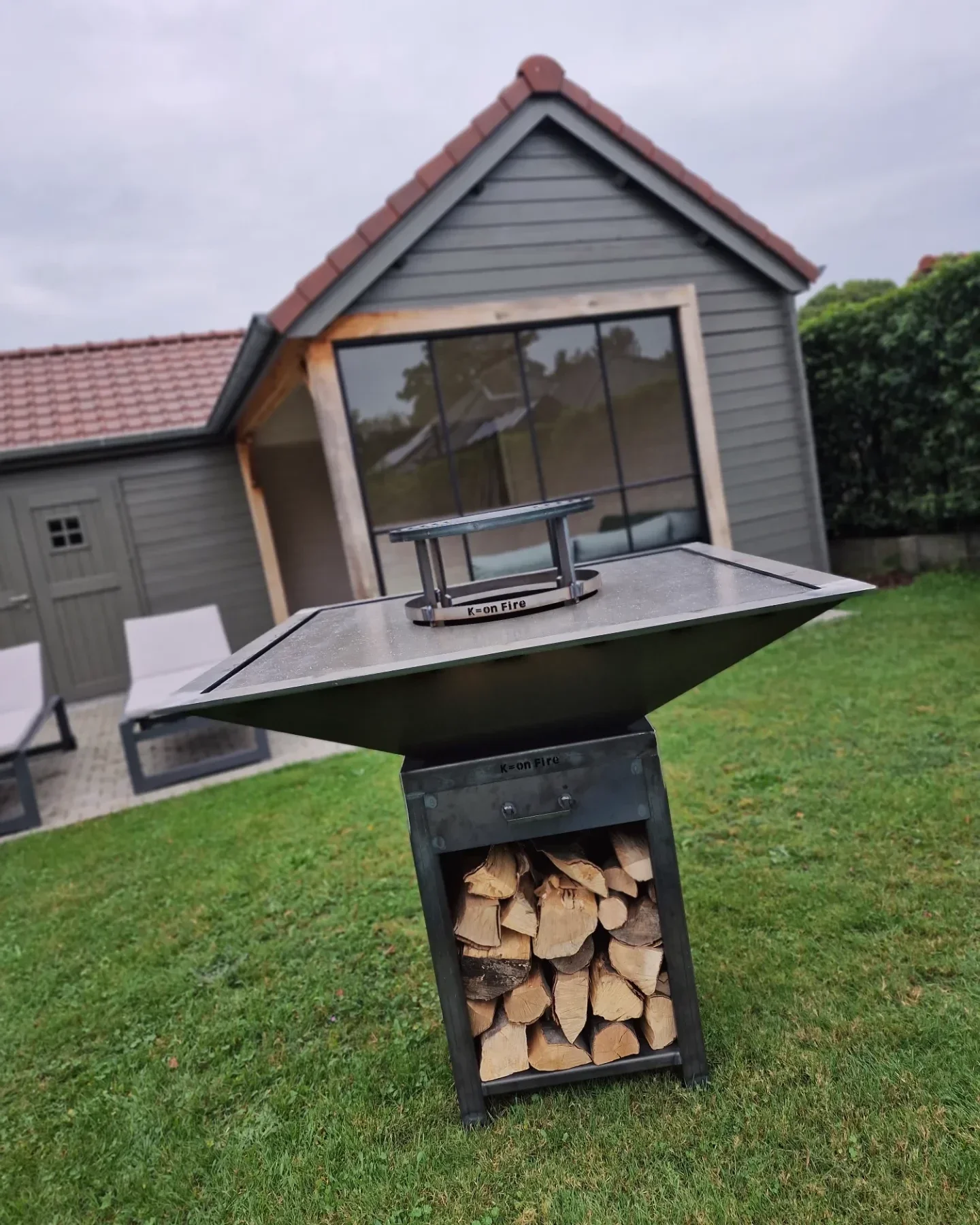K = On Fire zijn vuurschalen die vervaardigd zijn uit 3mm dik cortenstaal en bedoeld zijn om culinair te genieten in je eigen tuin, op je terras,... Uiteraard mag gezellig ontspannen aan het vuur ook niet ontbreken!