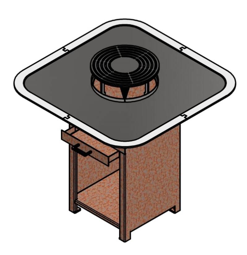Het onderstel bestaat bij alle keuzes uit 3mm dik cortenstaal. Op het onderstel wordt dan de vuurschaal geplaatst.