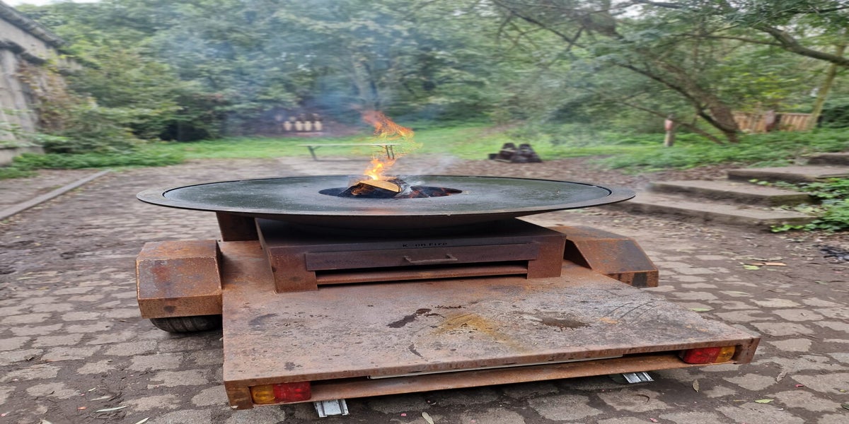 Standaard is onze K = On Fire On Tour voorzien van een vuurschaal met bakplaat van diameter 120cm en 10mm dikte.