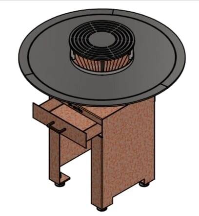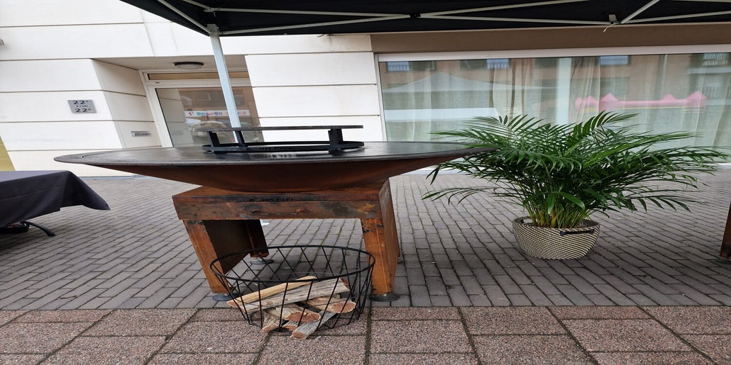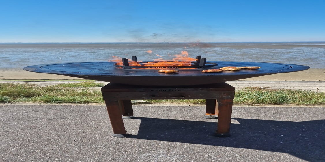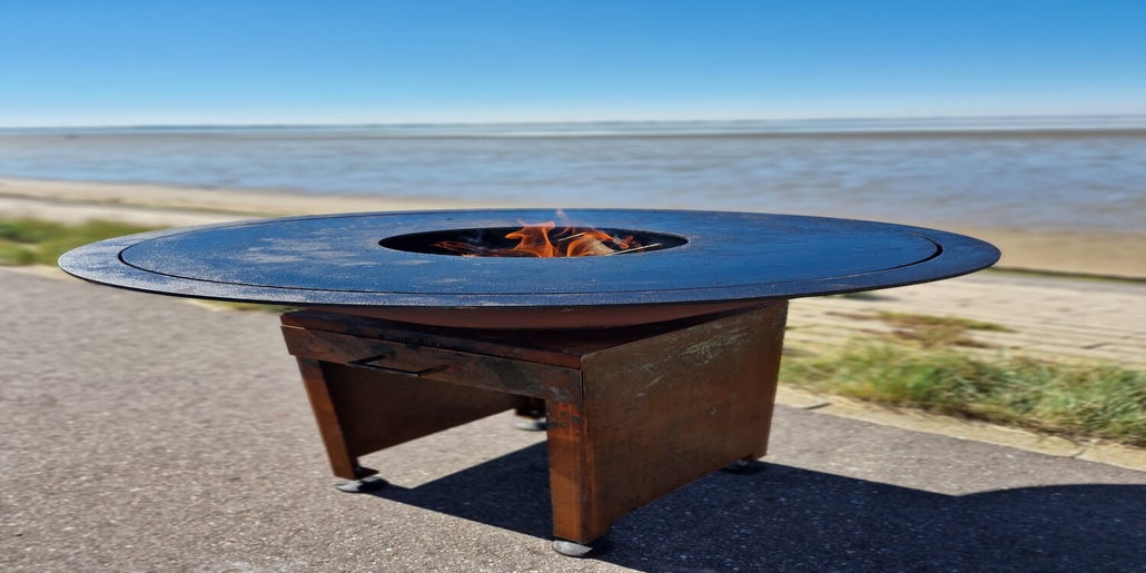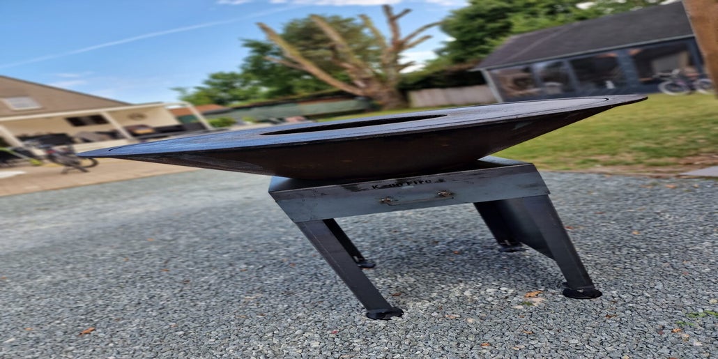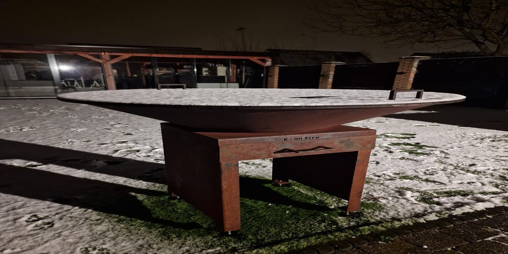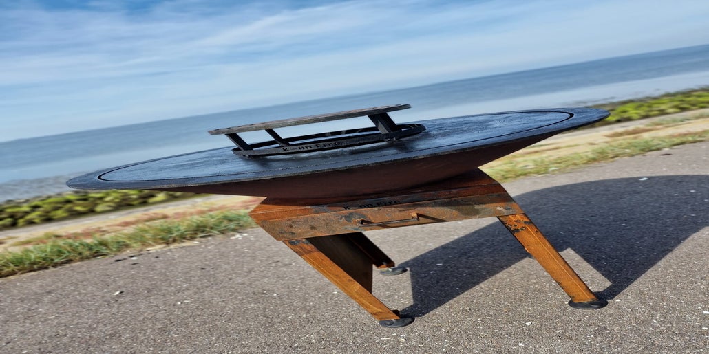 De K = On Fire Open heeft een klein onderstel bestaande uit 3mm dik cortenstaal. Op het onderstel wordt een vuurschaal geplaatst.